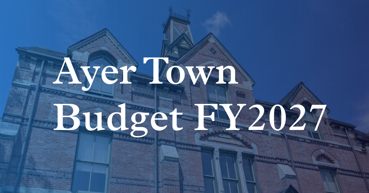 We have started keeping this “unofficial” budget timeline page. Official Town Budget Page for FY2027: Visit the town’s official FY2027 budget web page: https://www.ayer.ma.us/town-manager/pages/fy-2027-budget. —- Dates in reverse chronological order; goes back to the Oct. 27, 2025 Special Town Meeting, when voters approved the Senior Center. Jan. 20, 2026 Select Board Receives Presentation on Draft…